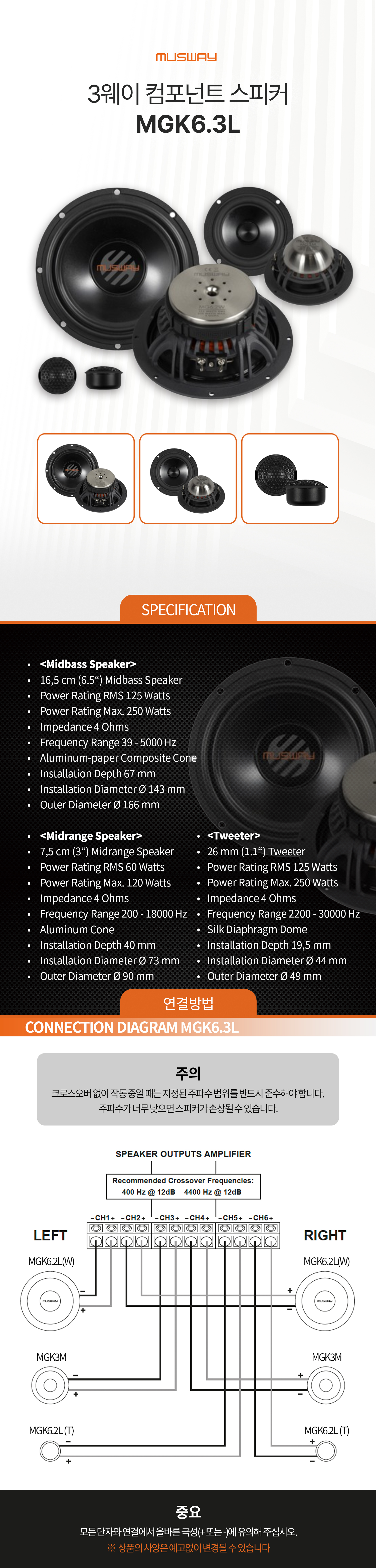 무스웨이 6.5인치 3-WAY 컴퍼넌트 스피커, MGK6.3L