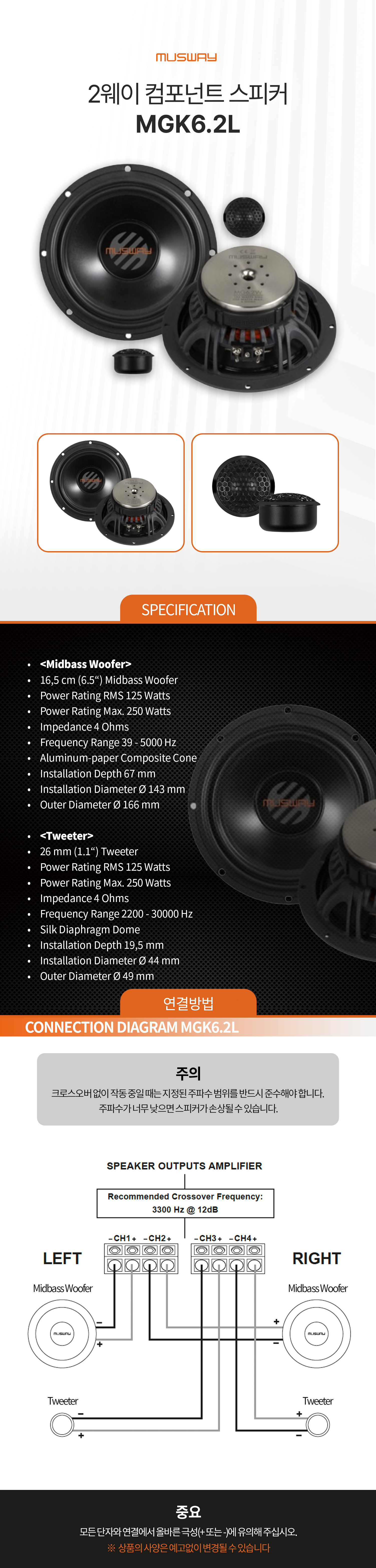 무스웨이 6.5인치 컴퍼넌트 스피커, MGK6.2L